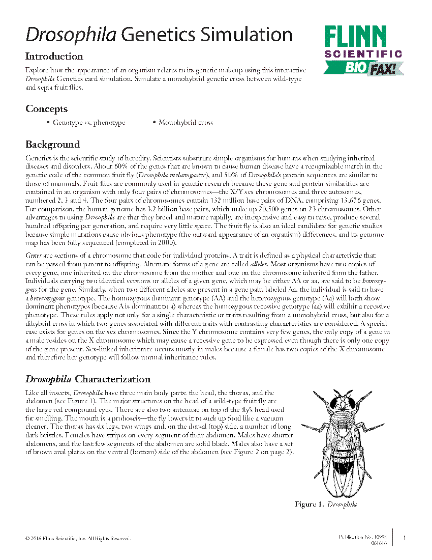 Drosophila Simulation Flinn Scientific